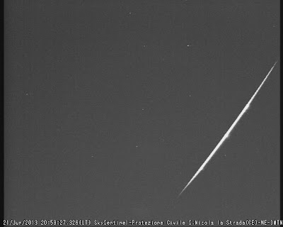 La notte del 21 giugno 2013, alle 23:00 circa , è stato immortalato un favoloso Bolide con tre frammentazioni ben visibili sulla scia durante la caduta in atmosfera.