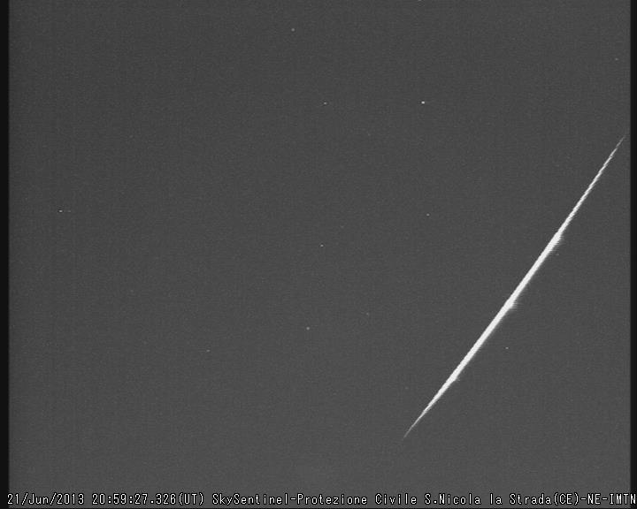 21 giugno 2013 - Bolide con 3 frammentazioni ripreso dalla postazione Sky Sentinel Di San Nicola la Strada (CE)