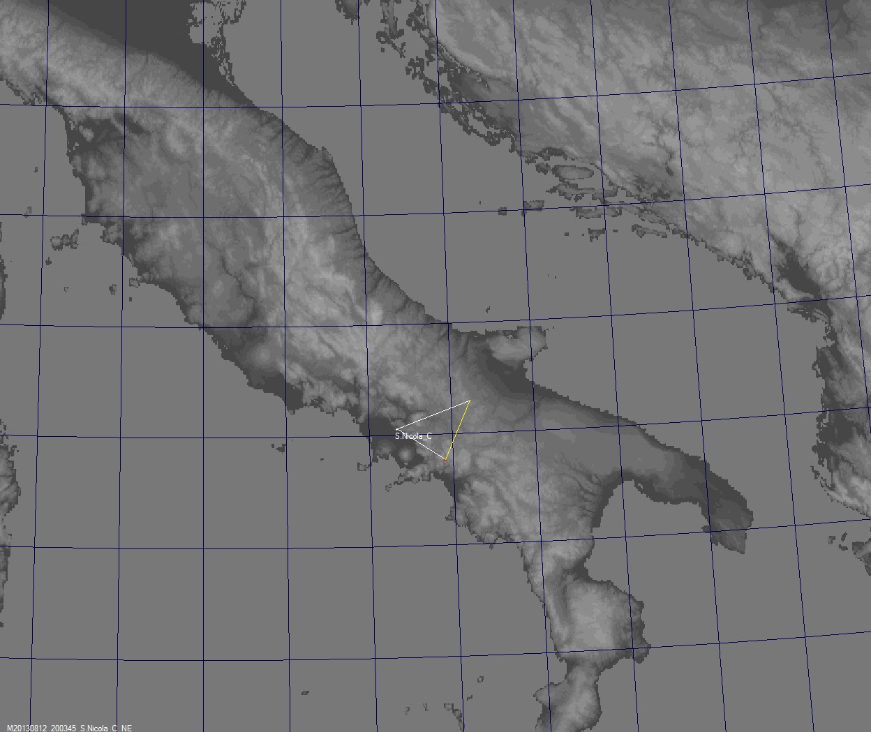 Bolide ripreso dalla postazione Sky Sentinel presso la Protezione Civile di San Nicola la Strada (CE) alle 22:03 (ora locale) del 12/08/2013 in direzione Nord-Est :