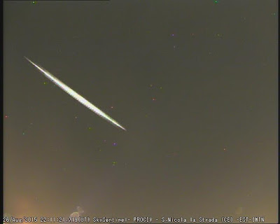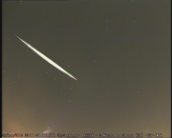 26 agosto 2015, Bolide catturato dalla Postazione Sky Sentinel presso la Protezione Civile di San Nicola la Strada (CE), Direzione Est